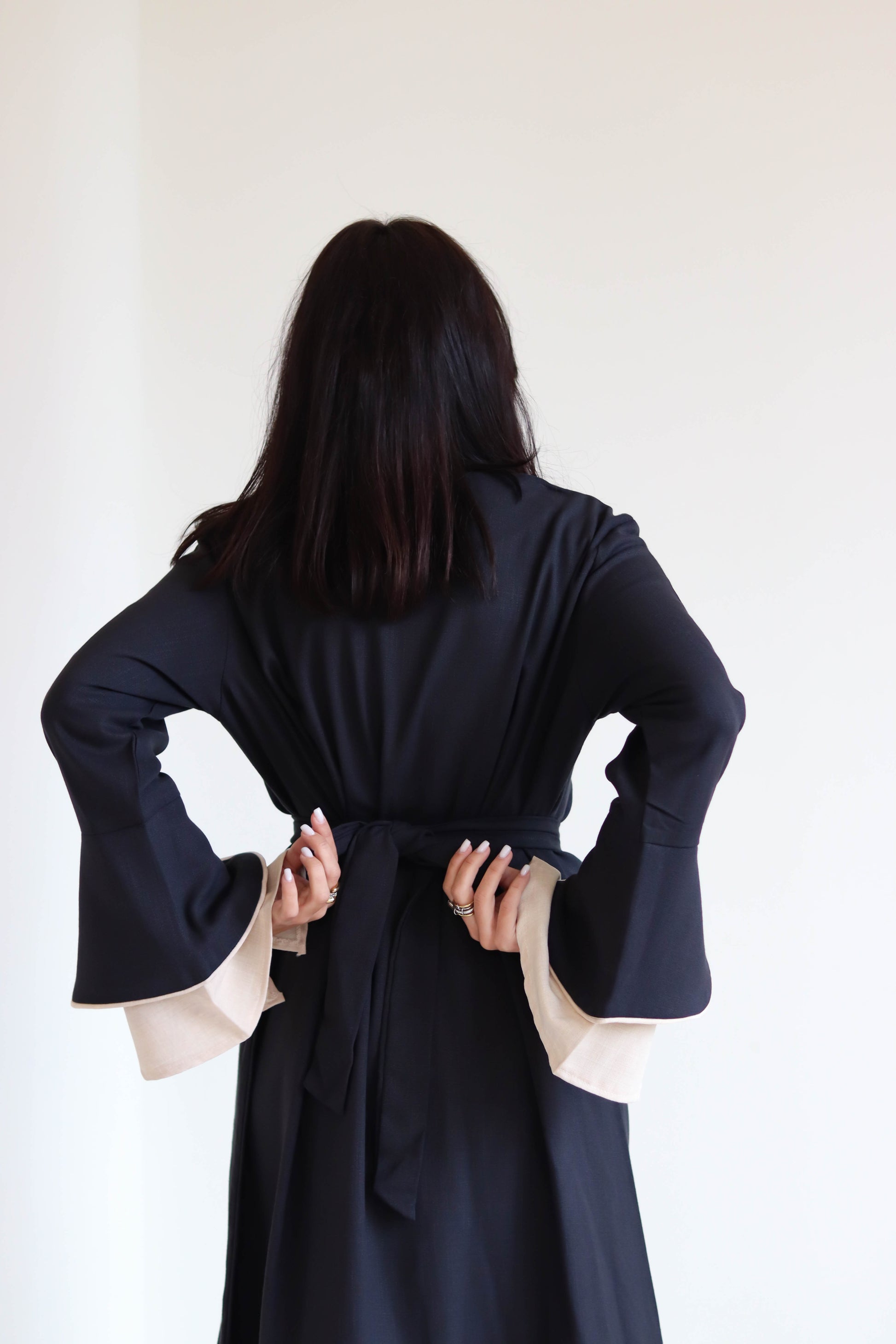 “Luxurious Turkish-inspired abaya with delicate design, perfect for Ramadan nights and special gatherings. Elegant and refined, combining comfort with sophisticated style for festive occasions.”