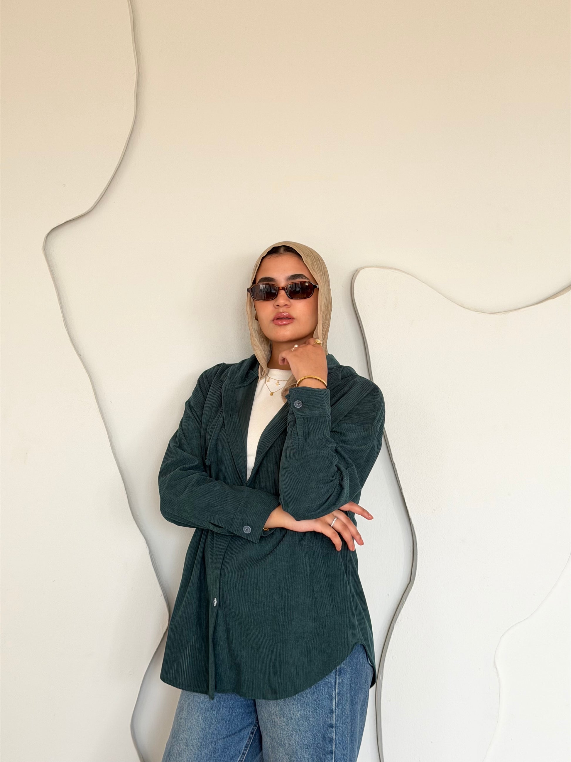 Velvet Ribbed Shirt Emerald Green